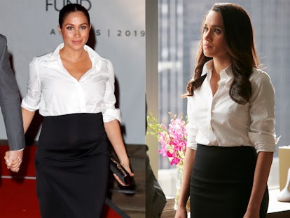 Finden Sie hier die besten Zwillingsmomente zwischen Meghan Markle und Rachel Zane und lassen Sie sich von der scheidenden Königin und ihrer ehemaligen Fernsehfigur ein wenig Inspiration für den Frühling 2020 geben.