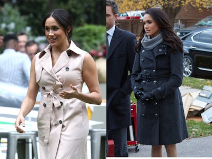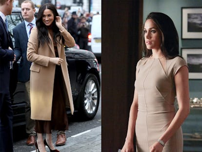Da Zane nicht gerade ein Fan von Farbe war, ist es immer eine subtile Anspielung auf ihr Alter Ego auf dem Bildschirm, wenn Markle in einem neutralen Mantel auftritt – vor allem in einem so maßgeschneiderten wie Zanes eigener Wahl.