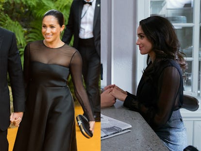 Sowohl Markle als auch ihre Leinwandfigur lieben einen freizügigen, verdeckten Look durch durchsichtige Teile und Ärmel.