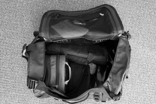 Jag använder numera enbart en ThinkTank Speed Changer för att packa min utrustning. Denna tar en DSLR-box i ena halvan och sedan två staplade objektiv i den andra. Fickan på framsidan rymmer tillbehör, med ett separat neoprenfodral som används för att packa eventuella extra objektiv. Allt detta kan stuvas in snyggt i väskan och lämnar gott om utrymme för extrautrustning (t.ex. kläder!).