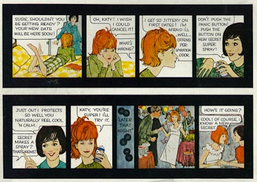 Sukces tych wczesnych dezodorantów i antyperspirantów nie wynikał tak bardzo z uświadomienia sobie przez amerykańską opinię publiczną, że są one śmierdzące, ale bardziej z sukcesu agresywnej kampanii reklamowej, która skupiała się na kobiecej niepewności. Ówczesne badania konsumenckie wykazały, że dwie trzecie ankietowanych kobiet nie sądziło, że ma problem z poceniem się. Biorąc to pod uwagę, reklama MUMs z 1919 r. zasadniczo powiedziała paniom: „Przykro mi, ale śmierdzisz – i to jest powód, dla którego nie masz żadnych randek”. Od tego momentu sprzedaż nabrała tempa.