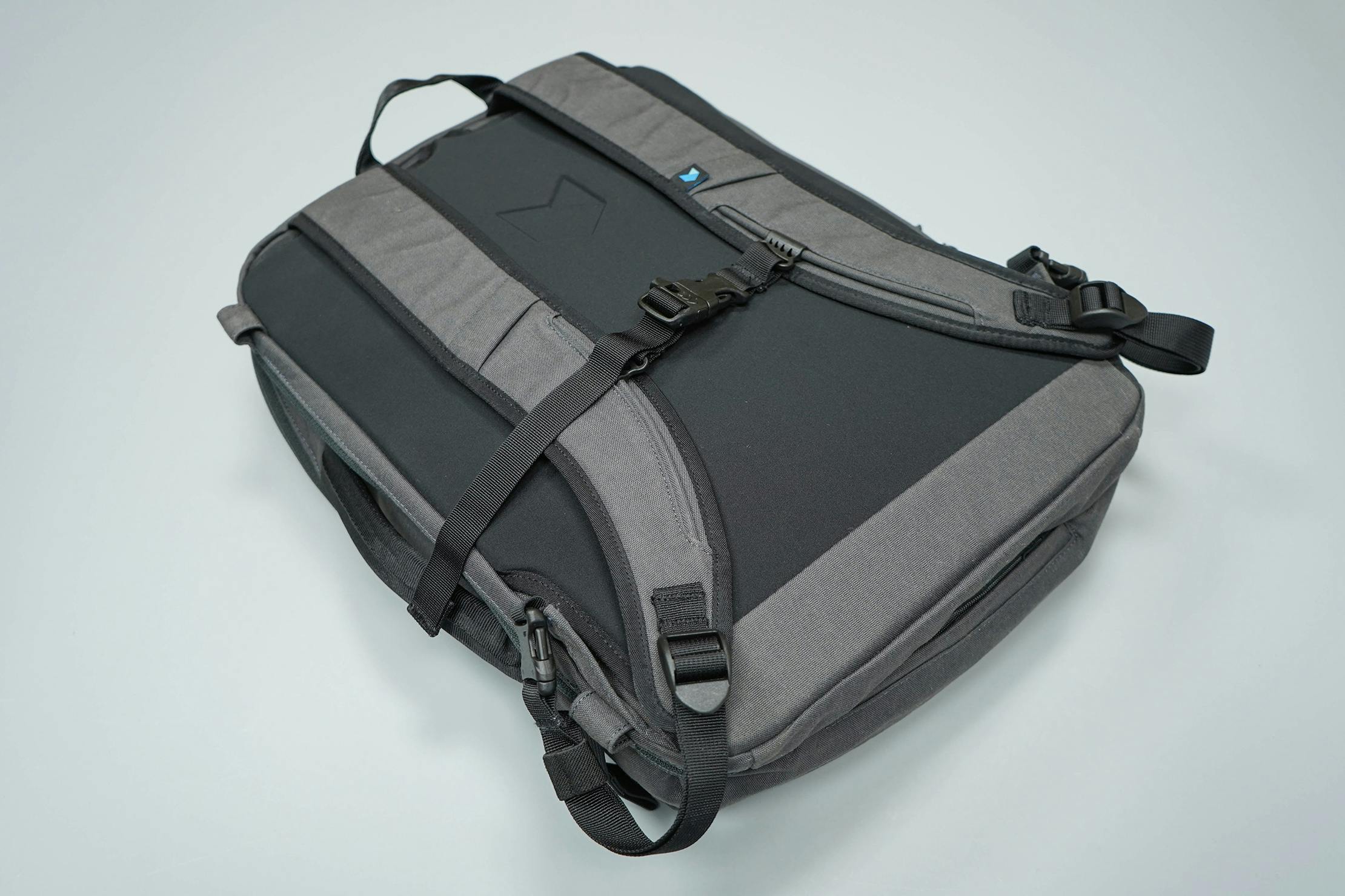 Como mencionamos no início desta revisão, o Minaal Daily Bag é empacotável no sentido em que embala de forma plana (embora não seja compressível). Normalmente, você tem que sacrificar um sistema de arnês confortável para conseguir essa empacotabilidade…mas não hoje! (Tão emocionante que merece um ponto de exclamação!).